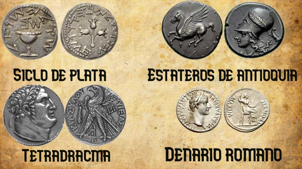 Muchos aluden que Judas traicionó a Jesús por dinero. No se sabe a ciencia cierta qué tipo de monedas de plata eran las que le pagaron a Judas. Si tenemos en cuenta que en el templo solo circulaban los ciclos, estas serían la elección más acertada. Sin embargo, para no levantar sospechas que el pago fue hecho por el Sanedrín, lo habrían hecho en monedas imperiales. Entonces hay cuatro posibilidades. El siclo de plata, los estateros de Antioquia, los tetradracmas o los denarios romanos.