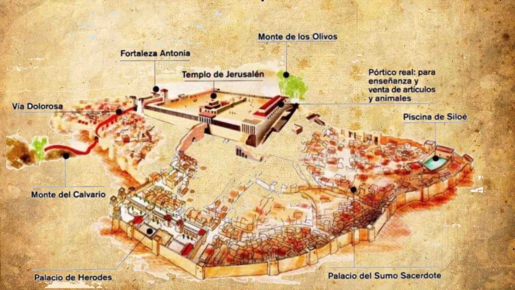 Los romanos le trajeron el madero que debería cargar hasta la cima del Gólgota, una elevación del terreno distante unos 2600 metros de la Torre Antonia. El camino discurría por las calles empedradas de Jerusalén, hasta salir de los muros de la ciudad.