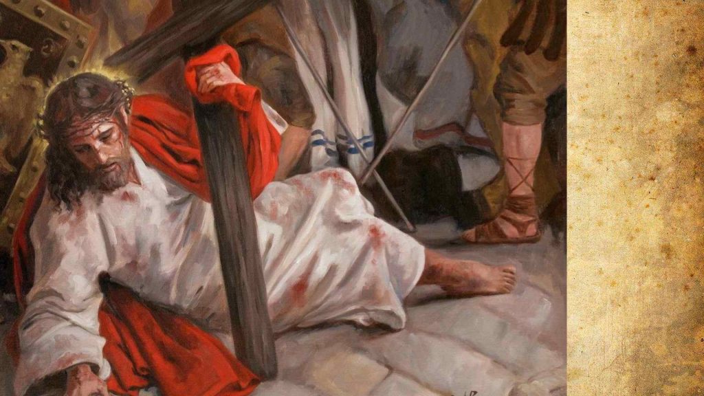 La tradición dice que Jesús cayo tres veces en su camino a la cima del Gólgota. Sin embargo, estas caídas no son relatadas en los evangelios. Son de tradición oral. Aunque no llama la atención que así sucediese dado el estado lamentable de Cristo.