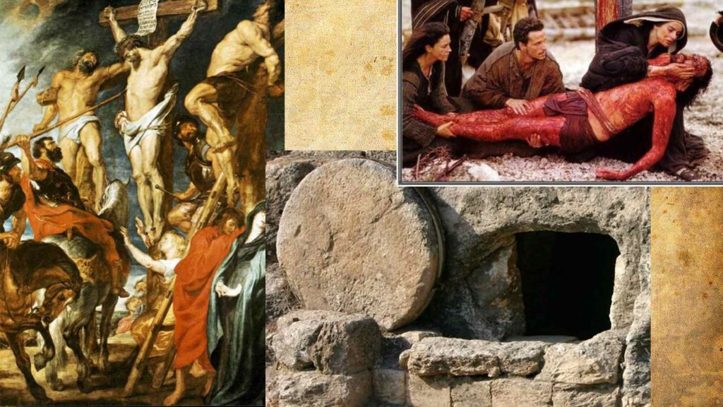 El cuerpo fue bajado de la cruz, amortajado y puesto en una tumba nueva cedida por José de Arimatea.