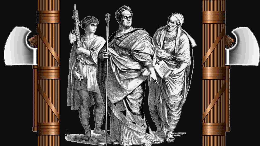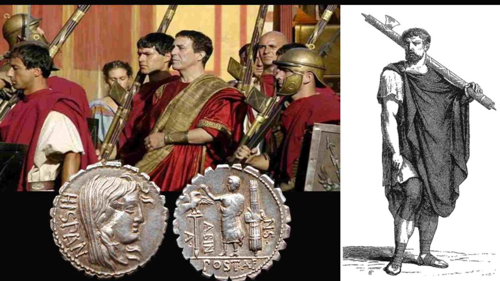 Este emblema tenía su origen en la antigua tradición etrusca y fue adoptado por los romanos, convirtiéndose en un símbolo prominente en la República Romana y posteriormente, en el Imperio Romano. Las fasces, del latín “Fascias” o “Haz”. Era un fajo de ramas de la cual sobresalía un hacha. se convirtieron en un atributo distintivo de los lictores, quienes eran los acompañantes y guardias de los magistrados romanos, como los cónsules y los pretores.