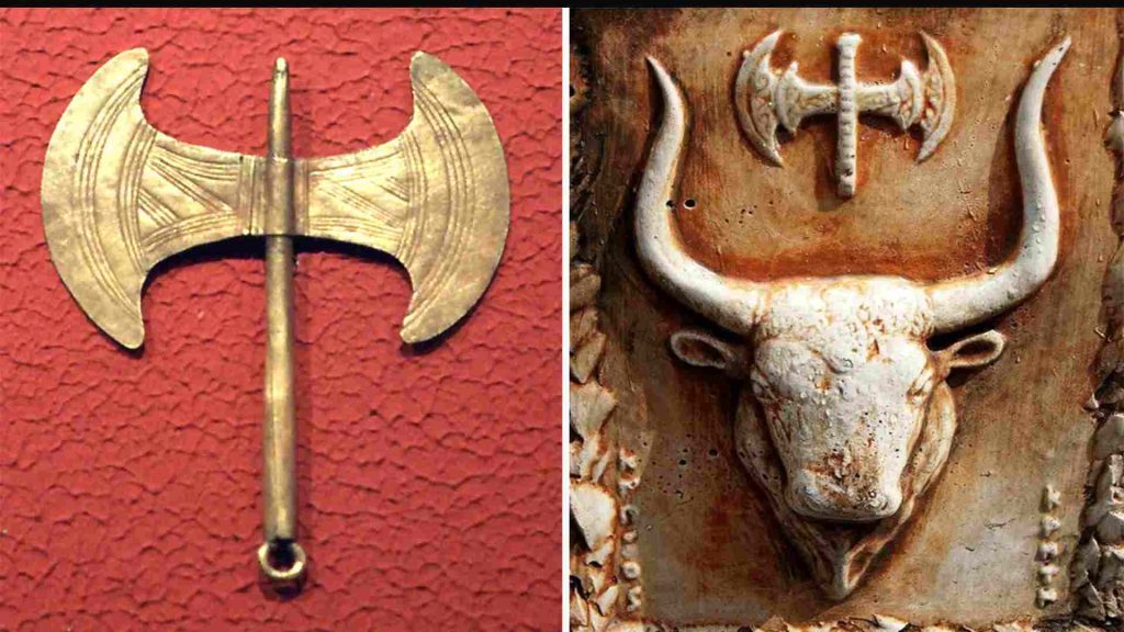 Esta famosa hacha de doble hojaes un símbolo popular tanto en el simbolismo griego como en la cultura romana. Los griegos clásicos lo conocían como Sagaris o Pelekys, mientras que los romanos también se referían a este símbolo como bipennis. También siguió siendo un símbolo popular en el imperio bizantino posterior, que fue el sucesor efectivo del imperio romano después de la caída de Roma. El labrys es un antiguo símbolo que ha sido utilizado en diversas culturas y civilizaciones a lo largo de la historia. Sin embargo, uno de los usos más destacados y significativos del labrys se encuentra en la cultura minoica, durante la Edad del Bronce. Una antigua civilización que floreció en la isla de Creta en el mar Egeo, aproximadamente entre los años 2600 a.C. y 1400 a.C.