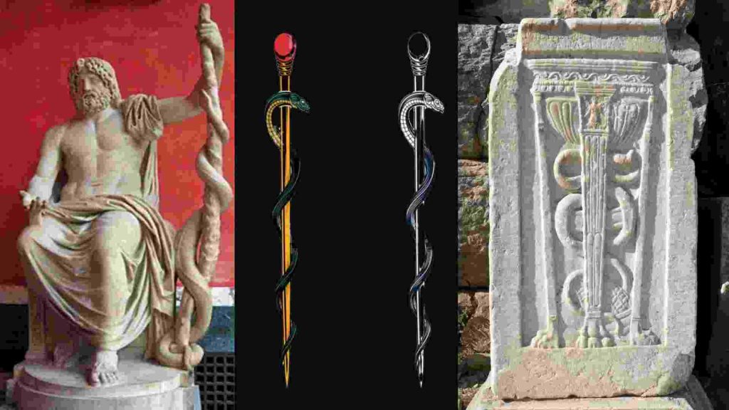 También conocida como la vara de Asclepio, este símbolo era popular tanto en Roma como en Grecia. Su camino desde los Balcanes hasta la península italiana se remonta a la civilización etrusca que precedió al establecimiento de Roma.