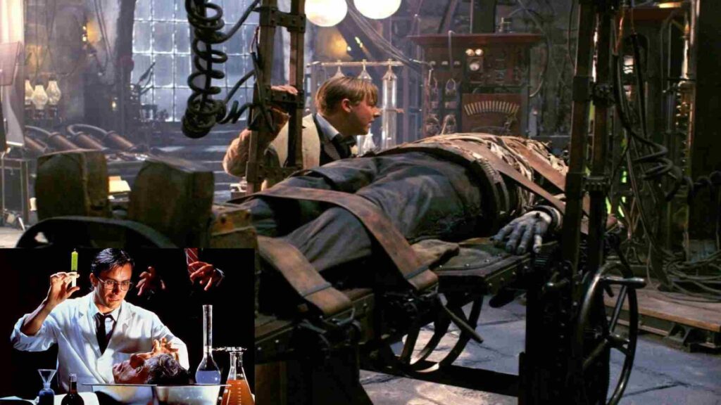 El monstruo de Frankenstein. Aquí el tema se complejiza ya que no está maldito. Es producto del intelecto humano, de la ciencia y la tecnología. Es el resultado de reanimar un cadáver, de volverlo a la vida. En este caso el operador, brujo o hechicero es suplantado por el científico loco. Ya que hay que estar demente para intentar revivir a los muertos. Claramente el científico en cuestión, no comparte esta definición. Las habilidades cerebrales superiores, son pocas debido a la fragmentación de la conciencia.