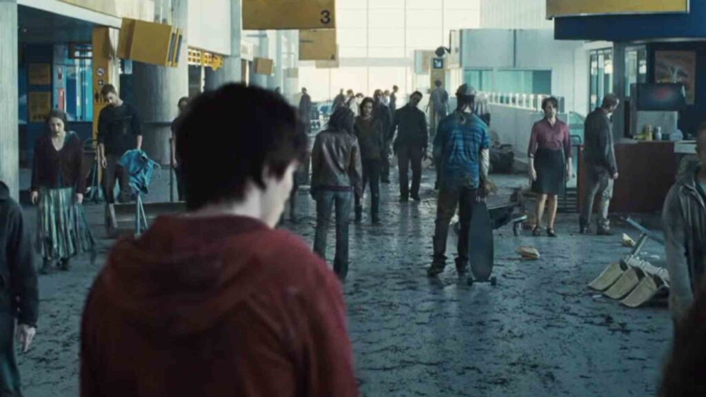 El trasfondo de nuestra manía por asustarnos, tiene explicaciones psicológicas que exceden la finalidad de este artículo. Básicamente para lidiar con nuestros miedos e inseguridades. El uso en el cine no solo nos pone frente a una situación imaginaria, también es la excusa para profundizar en las propias motivaciones humanas. La serie The Walking Dead se mantiene en el aire, no por los zombis los cuales son solo el trasfondo de una sociedad colapsada. Se mantiene en el aire por como los personajes humanos, lidian con esa situación imposible. En la película Mi novio es un zombi, el personaje principal es un zombi. El inicio de la película pone el tono de lo que va a ser todo el film. En un aeropuerto lleno de zombis caminando lentamente, uno de ellos añora los viejos tiempos (nuestro tiempo actual) donde la gente se comunicaba.  Desaparece el fondo y nos muestra un aeropuerto actual. Con todas las personas pendientes de sus celulares, aislados en sí mismos, como los zombis de la película.