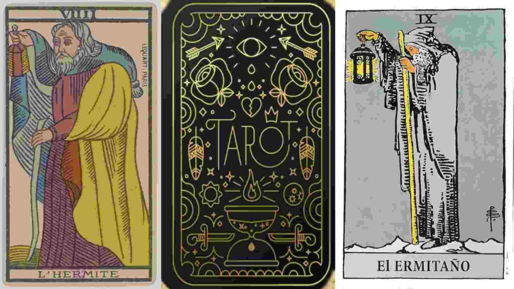 El Ermitaño es el noveno arcano mayor. Cabalísticamente vinculado a la letra Thet hebrea. Astrológicamente asociado al signo de Virgo y a la Luna. Esotéricamente le corresponde al elemento Tierra y a la estación otoñal. Numerológicamente se le asigna el número 9. La suma de tres ternas que llevan a la puerta de la sabiduría. Su asociación al nueve nos indica el fin del tiempo y de todos los números (0-9). Significando el logro de los objetivos. La realización y la sabiduría. Básicamente la búsqueda de la verdad.