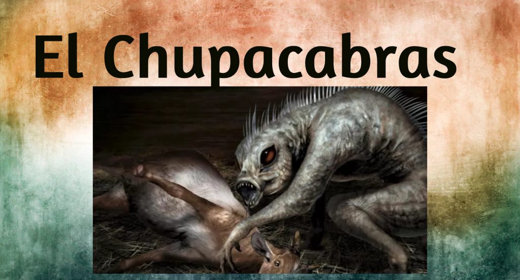 El primero es uno muy famoso y de origen latinoamericano, aunque actualmente tiene un reconocimiento internacional y me refiero al CHUPACABRAS, ya el nombre lo identifica claramente como un monstruo latino. Ademas describe sucinta y claramente lo peor de su conducta, el dejar sin sangre a cabras, ovejas y otros animales similares. Siendo un flagelo para los ganaderos. ¿Cómo y cuando surge esta bestia? Sus primeras menciones se pueden rastrear a 1994 en Puerto Rico. De ahí, se propago por el mundo, pasando primero a México y de ahí a Texas en EE.UU. Su salto a Hollywood fue un simple tramite.