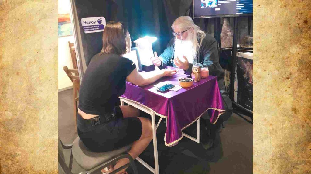 Ya había ocurrido en la edición pasada en el LATU que el interés por la quiromancia es mucho más alto de lo que esperaba y consultantes no nos faltaron. Fue por este motivo que en esta oportunidad nos acompañó Elizabeth para encargarse de la promoción y la venta de los mazos de tarot y la gift card. Esta gift card es un producto nuevo, básicamente es un regalo para aquellos que no saben que regalar. Es una tarjeta que se puede canjear en nuestra casa por una lectura de manos o una tirada de tarot (previa agenda).