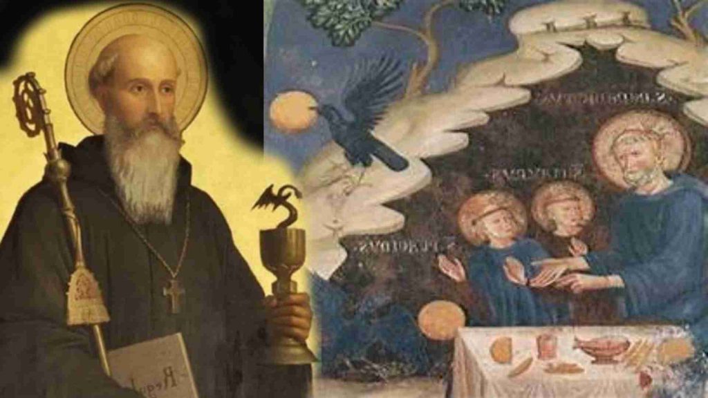 Durante una hambruna, San Benito oró y bendijo un barril de trigo. Este se multiplicó milagrosamente, lo que permitió alimentar a los monjes y a las personas necesitadas durante mucho tiempo. San Benito es conocido por haber realizado varios milagros relacionados con el agua. En una ocasión, se dice que bendijo un recipiente de agua envenenada y la convirtió en agua pura y saludable. Incluso profetizó la destrucción de un monasterio que se había vuelto corrupto. El cual sería saqueado por bárbaros. Sus palabras se cumplieron, años después de su muerte.