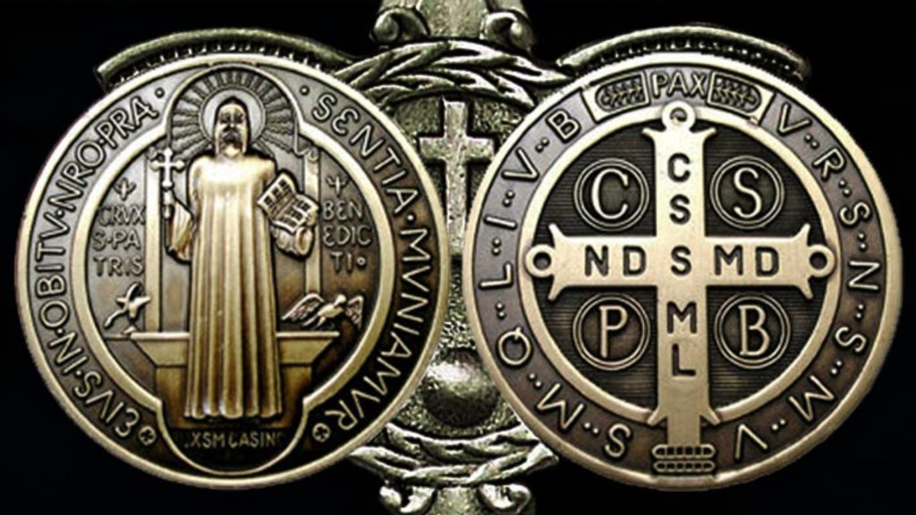 La medalla lleva el nombre y la imagen de San Benito, así como varias inscripciones y símbolos relacionados con él. Es una medalla sacramental, es decir un objeto bendecido por la Iglesia, se utiliza como un recordatorio de la fe y una herramienta para la protección espiritual. La medalla de San Benito se ha utilizado durante siglos y se cree que tiene poderes protectores y curativos.