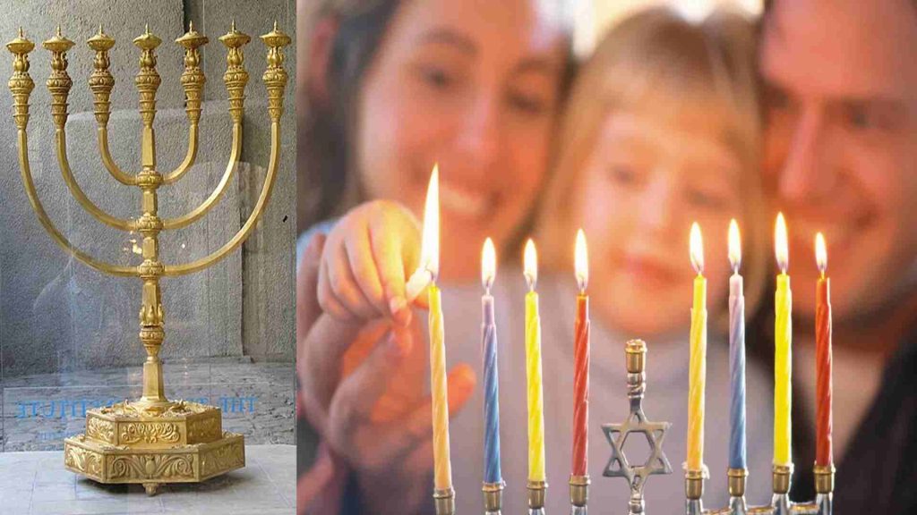 Esta semana en particular se reparten obsequios (de forma similar a como se hace en Navidad), se cena en familia y con amigos, compartiendo las diferentes golosinas y comidas típicas de la fecha. Aquí se hace necesario una aclaración. Posiblemente ya se habrán preguntado que es la menorá. La menorá (en hebreo, lámpara) es un candelabro o lámpara de aceite de siete brazos propia de la cultura hebrea. Se describe en la Biblia por primera vez en el libro del Ëxodo. Se trata de uno de los objetos rituales más importantes del pueblo judío y uno de sus símbolos más antiguos. Ya que se remonta a la época inmediatamente posterior a la salida de Egipto. La primera menorá fue diseñada por el mismo Yahvé y construida por el hábil orfebre Bezalel.