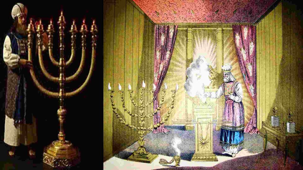 Según los libros de Zacarías e Isaías, la menorá simboliza al espíritu divino. En palabras del Rabino Najman de Brelov “El alma del hombre es la lámpara de Dios. Nosotros somos los que debemos encender las lámparas, lo que nos enseña que es nuestra responsabilidad hacer lo que sea necesario. Si servimos a Dios, incluso ese poquito, estamos encendiendo nuestras propias lámparas, nuestras almas. Entonces Dios nos ayudará asegurándose de que la llama nunca se apague.”  De acuerdo con la Biblia, la menorá fue colocada en el Tabernáculo y posteriormente en el Templo de Jerusalen. Allí, delante del Santo Santorum (donde se encontraba el arca de la alianza) había un candelabro de oro purísimo, labrado a martillo, que tenía siete brazos, en cada uno de los cuales ardía una luminaria.