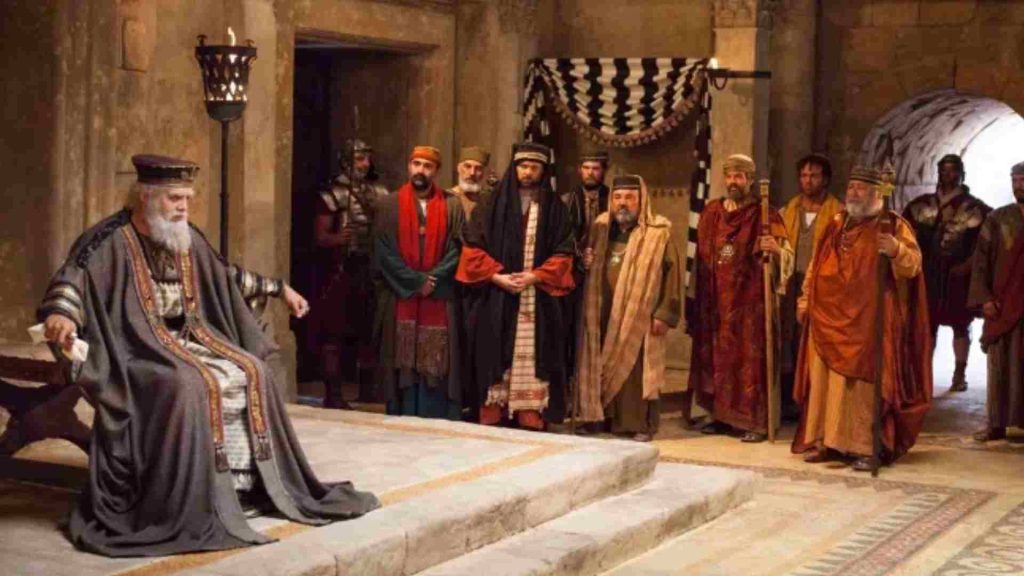 Enterado Herodes de esta caravana tan especial, los hace comparecer ante él. Sorprendido por la profecía el viejo y artero rey les hace prometer a los viajeros que apenas encuentren al niño, le avisen para ir a adorarlo también. La historia lo recuerda como Herodes el grande. Constructor de la imponente fortaleza de Masada y artífice la reconstrucción de templo de Jerusalén. El evangelista lo retrata como un tirano celoso y muy peligroso.