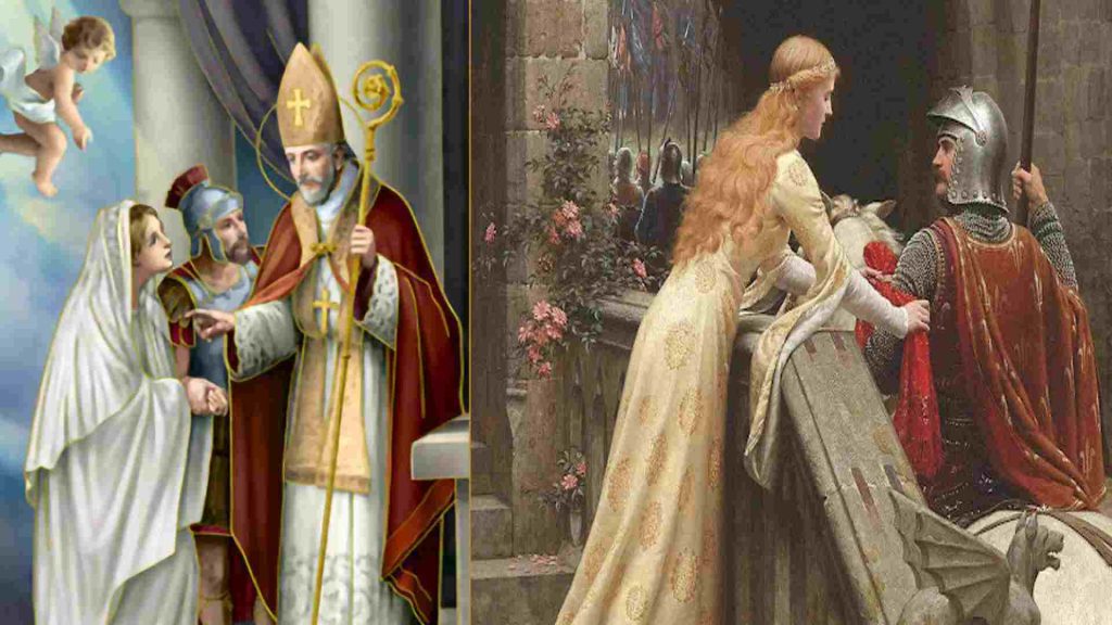 Posterior a la leyenda de San Valentín de Roma, la Iglesia Católica ya como religión oficial de Roma y liderada por el papa Gelasio I, buscaba la eliminación de las fiestas lupercales. En estas por tradición se sacrificaban perros y cabras para desollarlos y con sus pieles, hacer látigos Estos se usaban sobre las mujeres para asegurar su fertilidad. La Iglesia católica buscó una forma de hacer desaparecer esta celebración sin que la población protestase y escogió la vida noble de San Valentín para que representase el amor entre los seres humanos. Con fecha del 14 de febrero, del nuevo calendario gregoriano, fue instaurada las festividades de San Valentín. ​ La fiesta poco a poco fue asimilándose al día de la fertilidad y las lupercales quedaron reducidas hasta prácticamente su desaparición. Se tiene registro de que el primer día de San Valentín fue celebrado el 14 de febrero de 494. La fiesta fue oficial en la Iglesia católica hasta que el papa Pablo IV dejó de celebrarlo y finalmente en 1965 durante el Concilio Vaticano con Pablo VI se eliminó la fiesta del calendario litúrgico.