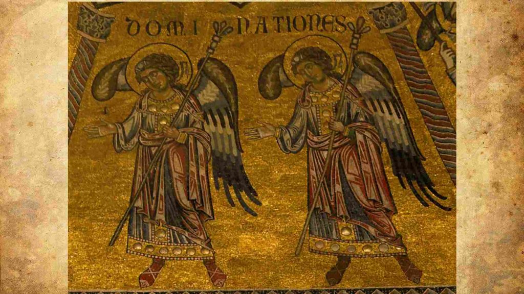 En ambos casos, estas cartas escritas por San Pablo hacen referencia a este tipo de ángeles en el listado de poderes sobrenaturales sometidos a Jesús. Lo hace para enfatizar el poder y la posición del Nazareno como Señor de todo lo creado. Empleando San Pablo para ello los términos comunes para nombrar autoridades civiles de su tiempo, al punto de que se ha llegado a dudar de si el término refiere verdaderamente a los ángeles o a las potestades humanas. Las dominaciones no aparecen en el listado de jerarquías espirituales señaladas en la Carta a los Romanos, que se limita a enumerar a los ángeles, principados y potestades; mientras que en Efesios aún más breve solamente nombra “a los principados y potestades de los cielos”. Las Dominaciones o «Dominios» se presentan como la jerarquía de los seres celestiales. “Señoríos” en algunas traducciones al inglés de la Jerarquía De Coelesti. Las Dominaciones regulan los deberes de los ángeles inferiores. Es extremadamente raro que estos señores angélicos se dan a conocer físicamente a los humanos.