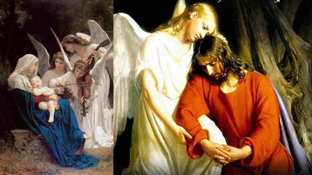En la Tanaj (también conocido como Mikrá, que es el conjunto de los veinticuatro libros sagrados canónicos en el judaísmo. Es decir, la Biblia Hebrea) solo se nombra a dos ángeles. Al arcángel Gabriel que según se cree, iluminó el entendimiento de Daniel. Y el arcángel Miguel, considerado protector de Israel, según se relata en Daniel 12:1. Luego y ya dentro de la Biblia cristiana, en el Libro de Tobías aparece el arcángel Rafael. En el libro no canónico de Enoc, se dice que los ángeles asistieron a la entrega de la ley mosaica. En el Nuevo Testamento se aclara que: los fariseos creían que los ángeles comunicaban al hombre con la voluntad de Dios, como reza el pasaje de Hechos 23:9. Por otro lado, los saduceos no creían ni en ángeles ni en espíritus, Hechos 23:8.