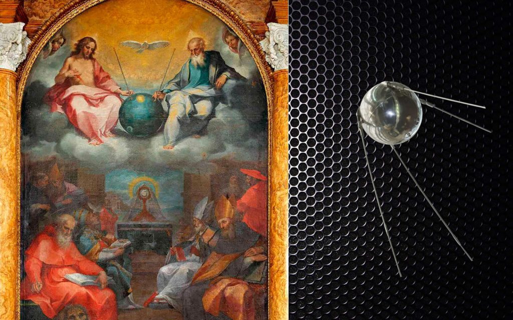 En ella la triada divina están en contacto con un orbe al cual le salen dos antenas, lo que hacer acordar instantáneamente al Sputnik el primer satélite artificial. ¿Porque Salimbeni le puso antenas al orbe?, es algo que se nos escapa, tan vez solo sea alguna licencia artística que se tomó y que nosotros interpretamos quizás de manera errónea. El orbe, la esfera, es la representación del mundo, tanto del terrenal como del cielo. Hace referencia a la perfección de la creación.