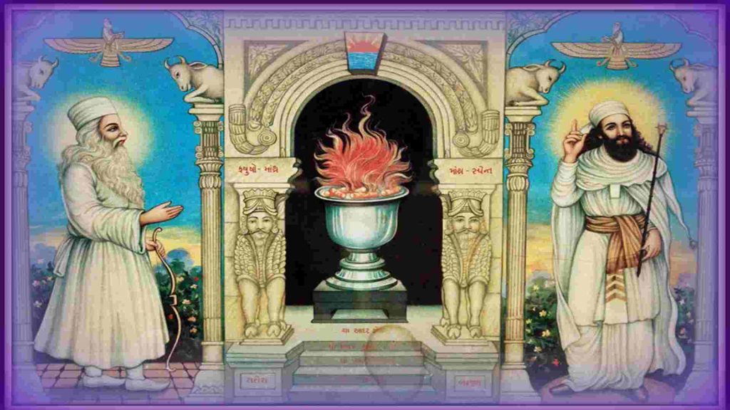 La enseñanza de Zoroastro tiene tres principios importantes: buenos pensamientos, buenas palabras y buenas acciones. Ahura Mazda, el Sabio Señor, creó el mundo sobre la base de la veracidad. El buen espíritu (Spenta Mainyu) y su gemelo, el espíritu maligno (Angra Mainyu) son los engranes a través de cuya cooperación existe el mundo. Para que el bien triunfe sobre el mal, el hombre tiene que tomar una decisión, porque el ser humano es el único ser vivo al que se le ha dado la oportunidad de liderar y cambiar.