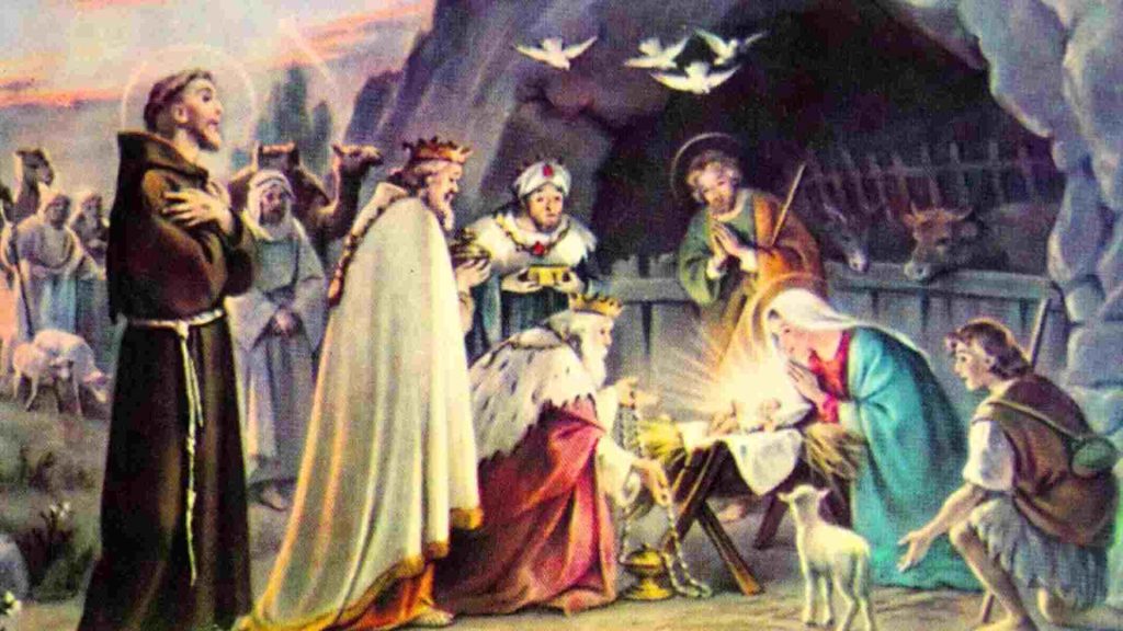 Debido a la cercanía de la Navidad, a la que él tenía especial aprecio, quiso celebrarla de manera particular ese año de 1223. Para ello convidó a un noble de la ciudad de Greccio, de nombre Juan, a festejar el nacimiento de Jesucristo en una loma rodeada de árboles y llena de cuevas de un terreno de su propiedad. Pretendió que la celebración se asemejara lo más posible a la natividad de Jesús en Nazaret. Montó un pesebre con animales y heno. Pobladores y frailes de los alrededores acudieron a la misa en procesión. Allí Francisco asistió como diácono y predicó un sermón. Aunque no fue la primera celebración de este tipo, es considerada un importante acontecimiento religioso, una fiesta única. Asimismo, se considera que en esa celebración, San Francisco inventó los nacimientos o belenes, escenificaciones plásticas del nacimiento de Cristo.