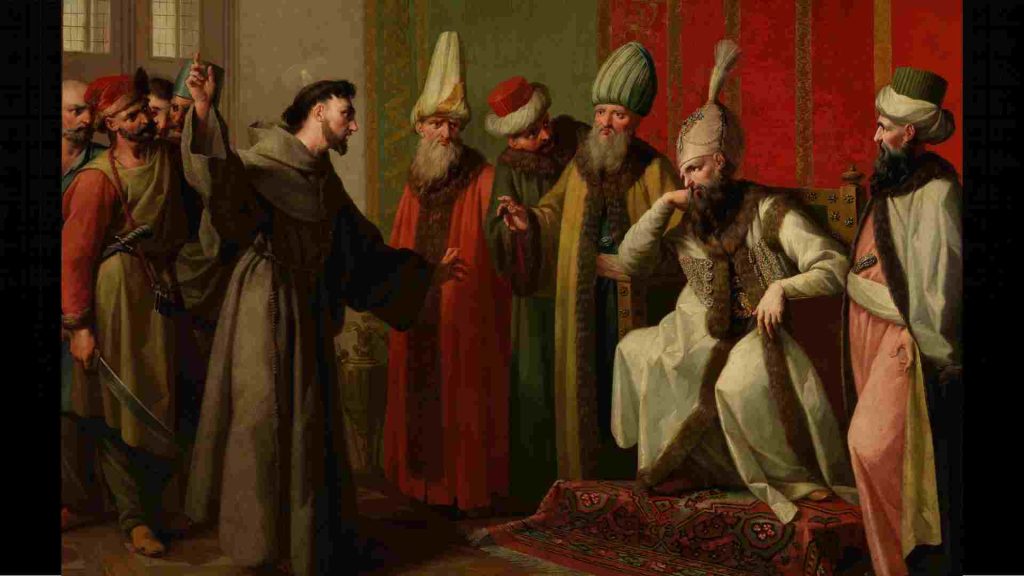 Según relata Buenaventura, San Francisco en su afán de convertirlo al cristianismo, invitó a los ministros religiosos musulmanes a entrar con él en una gran fogata (equivalente a una ordalía (juicio de dios) o prueba del fuego, para así demostrar qué religión era la verdadera. Los mulás rehuyeron la propuesta. Francisco ofreció entrar solo y retó al Sultán a que, si salía ileso, se convertiría al cristianismo e incitaría a su pueblo a hacerlo. El regente rechazó también esa posibilidad. Al final, sus pretensiones se frustraron. En reconocimiento, el Sultán de Egipto entregó a Francisco un cuerno de marfil finamente tallado que habría oficiado de salvoconducto en tierras musulmanas y que se conserva en la Basílica de Asís.